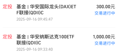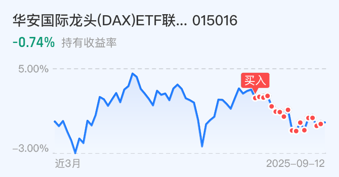 我定投300元,跟踪的德国DAX30指数昨天收涨0.21%,短线看最近一直是个小箱体震荡态势,大概率也在等美联储降息落地,这只额度更少,所以也不用太在意短期的波动,每天只能定投300块,可以做为海外配置一个方向,分散A股投资风险的同时,也能享受德国上涨红利。$华安德国(DAX)联接(QDII)C(OTCFUND|015016)$