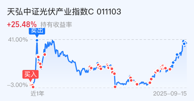 $天弘中证光伏产业指数C$跟踪的光伏产业指数这会看涨0.3%左右,我轻仓没操作。$天弘中证光伏产业指数A(OTCFUND|011102)$