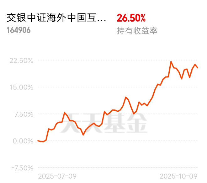 $交银中证海外中国互联网指数(LOF)A$ 收益还不错,目前26.5%,回调了也先拿住吧,等待后续反弹!