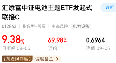 我加仓$汇添富中证电池主题ETF发起式联接C(OTCFUND|012863)$1000元,跟踪的CS电池最近表现太强啦,上周四逆势收红,周五直接大涨9.38%!今天盘中看又大涨3.2%左右,看来要实现强势4连涨了!CS电池指数有25%的储能概念,第一大权重股是阳光电源,其他相关指数大都没有,汇添富电池近1周就涨了13.64%、位居同类榜首,近1个月涨超35%,而且费率还同类较低,我做为电池首选!