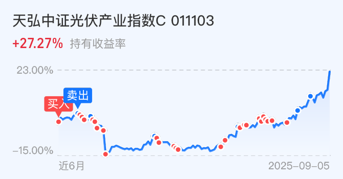 跟踪的光伏产业指数这会看涨0.2%左右,继续年内新高,我最近在加电池,光伏就先不动了。$天弘中证光伏产业指数A(OTCFUND|011102)$
