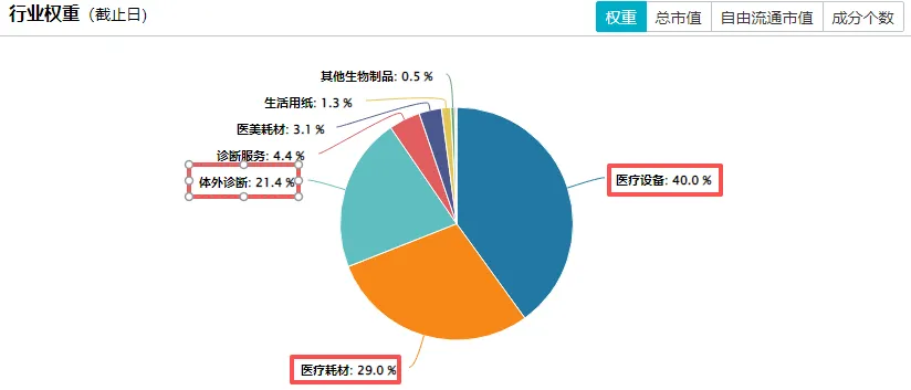 刚好,这个指数在三个领域不仅做到了全覆盖,而且占比很高,三者的合计占比超过了90%。这三个领域也是目前乃至未来,医疗器械产业链上潜力最大,发展方向最好的几个。