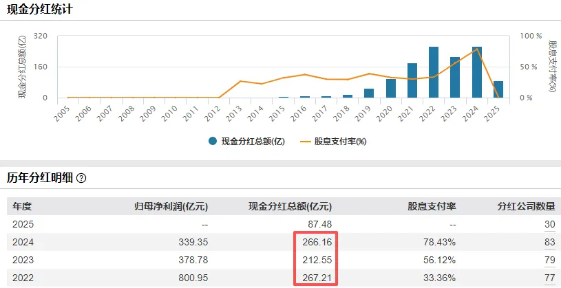 甚至在2022-2024这三个完整的自然年中,分红金额都在200亿元以上,这是我心里的加分项,因为这样的企业往往会让股东更安心,员工更有干劲,发展更有前途。