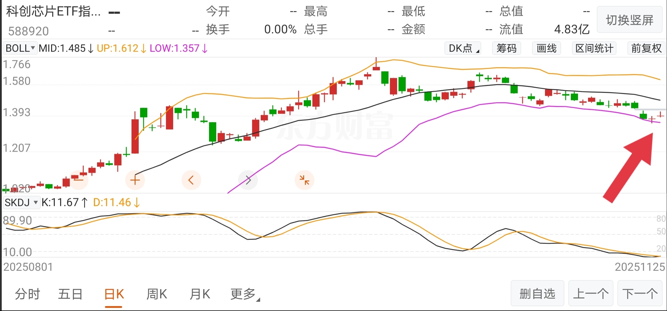 另外一个板块是芯片半导体,经历将近两个月的调整,也已经到了可以抢反弹的时候。就拿我7月发帖看好的$科创芯片ETF指数(SH588920)$ 来说,周一诱空下跌,已经跌至布林线下轨,中线布局时机已经来临,现在入场正好是最底部。