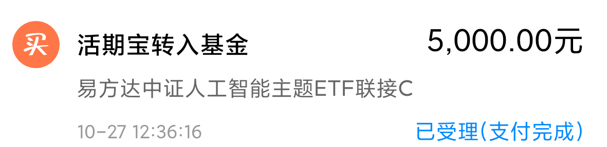 继续加仓买进5000的 $易方达中证人工智能主题ETF联接C(OTCFUND|012734)$