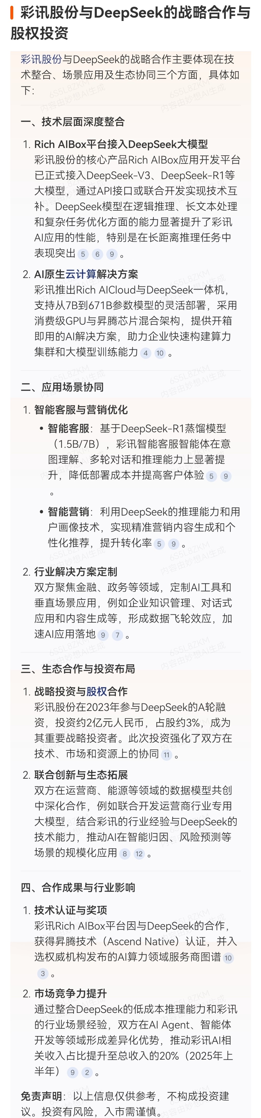 彩讯股份:DeepSeek V3.2正式发布对人工智能产业及其战略合作伙伴的重大意义