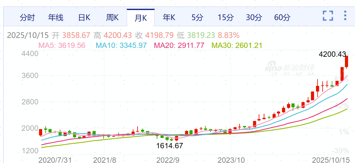 图:现货黄金价格走势 来源:新浪财经 截至时间:20251015