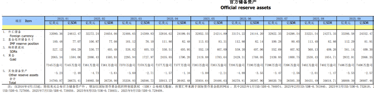 全球央行今年来持续囤金黄金,成为推动金价上涨的主要因素之一。据最新数据,央行公布最新官方储备数据,9月末黄金储备为7406万盎司,较8月增加4万盎司,实现连续第11个月增持。