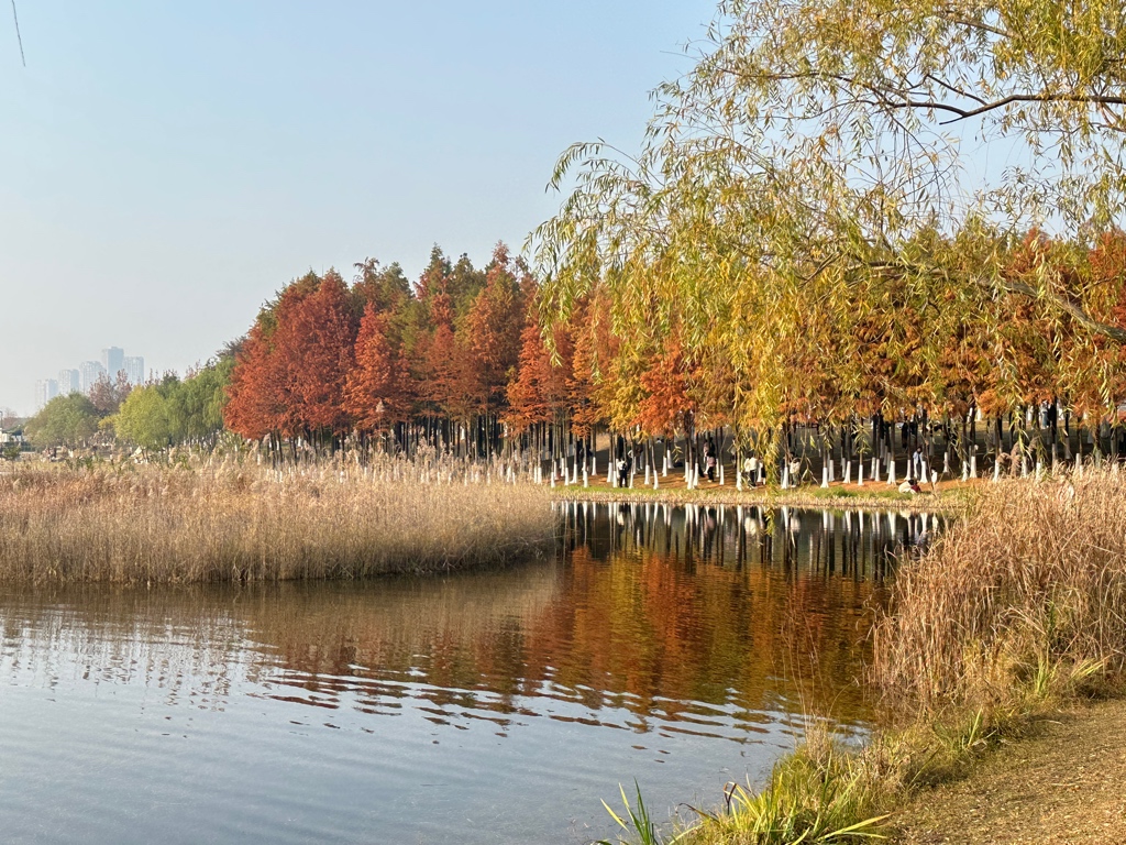 本以为秋冬的银杏都是金黄,今天我看了一颗满是翠绿色的银杏树,他在树丛中格外突兀