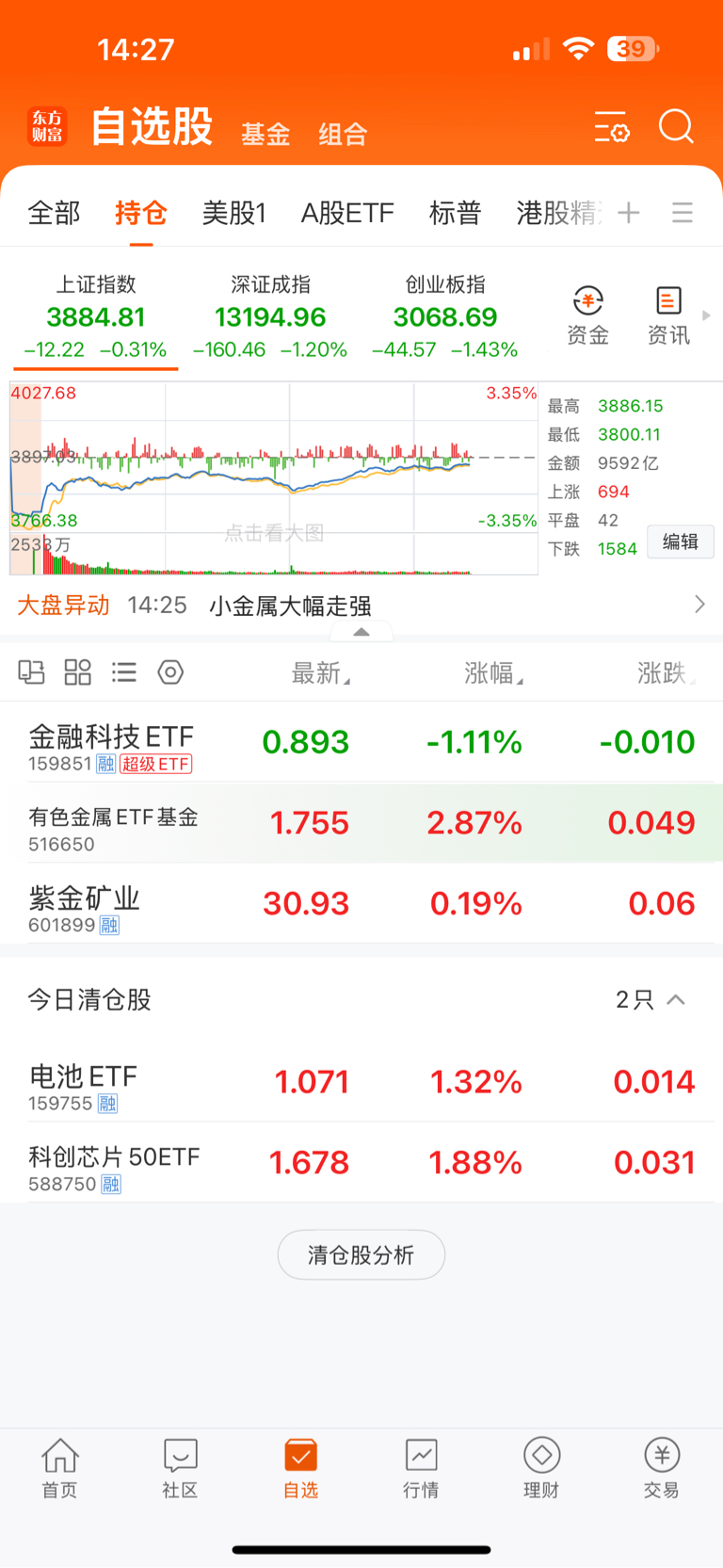 $金融科技ETF(SZ159851)$ 我所有的池仓都大涨,就你一直在水下,买你一个月还亏