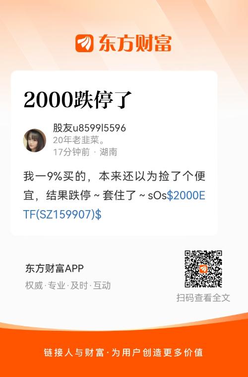 我一9%买的,本来还以为捡了个便宜,结果跌停~套住了~sOs$2000ETF(SZ159907)$