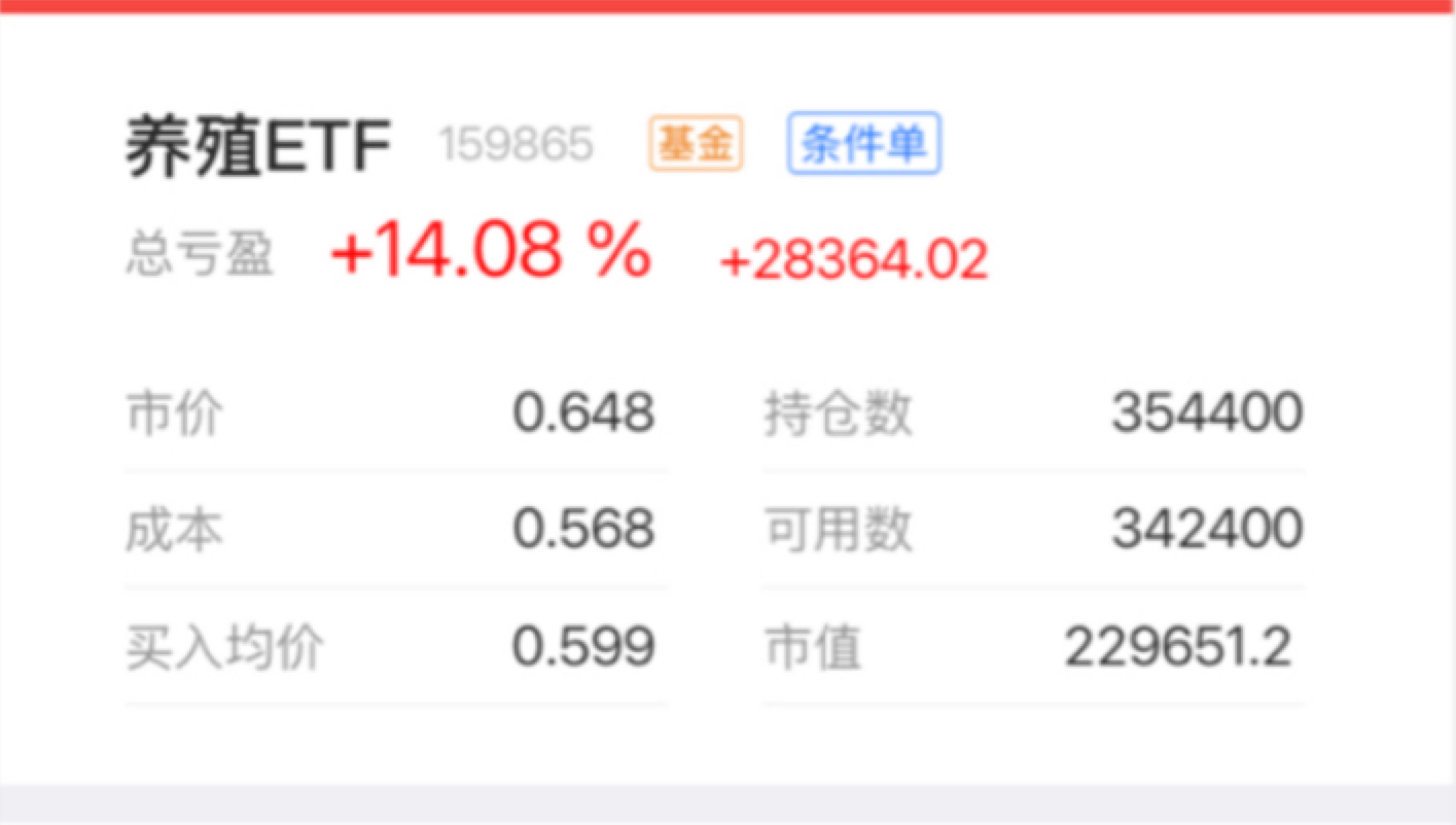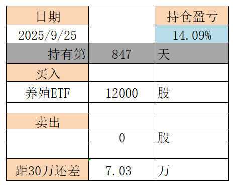 养殖ETF定投第847天买入12000股,卖0股累计盈亏:+28364.02