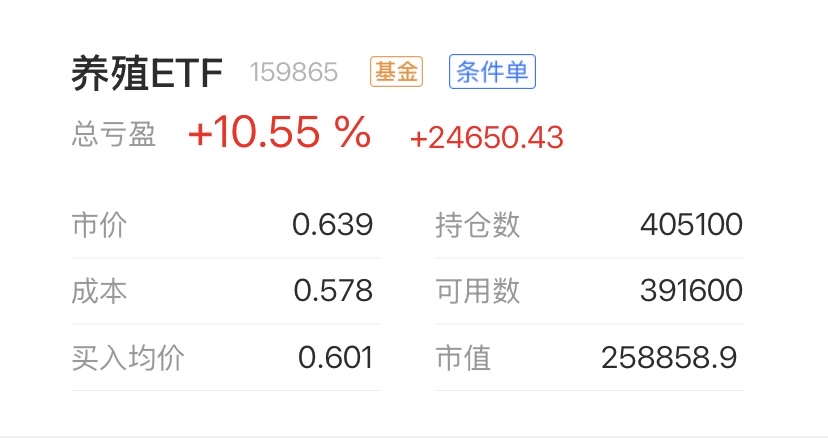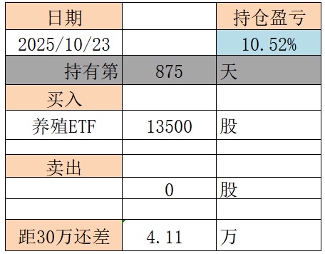 养殖ETF定投第875天买入13500股,卖0股累计盈亏:+24650.43