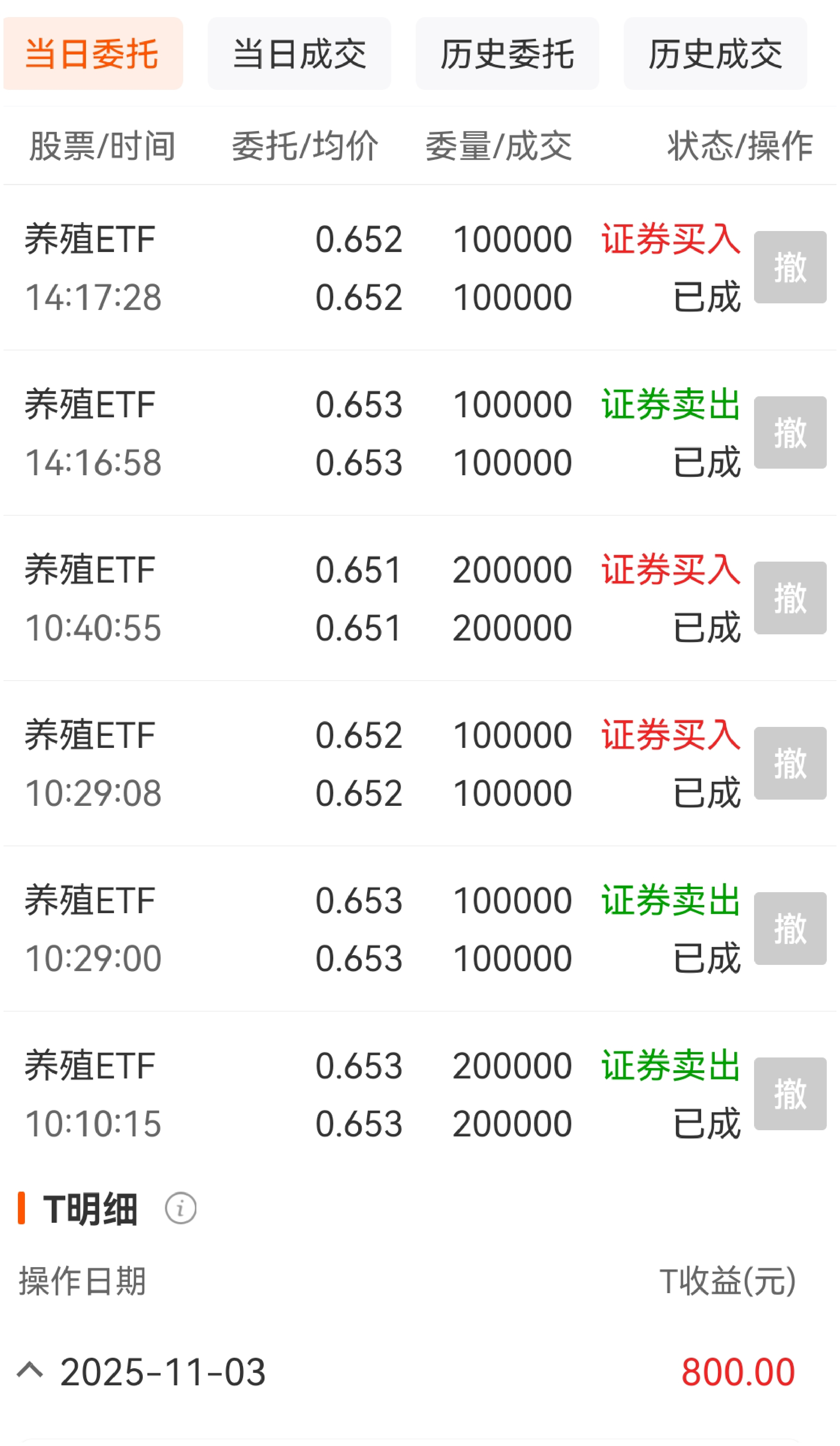 $养殖ETF(SZ159865)$ 持仓不变,随便t几次,800到手。