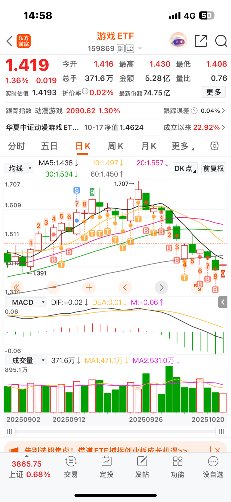 $游戏ETF(SZ159869)$ 下跌时候没做T ,还得练