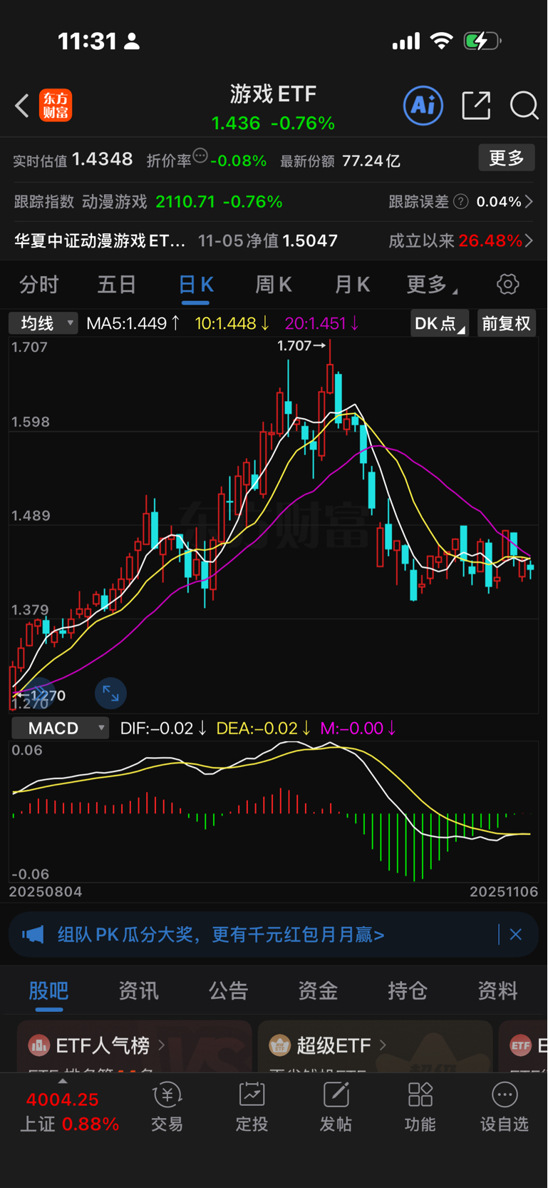 $游戏ETF(SZ159869)$ 长期看好的板块我很少做几十面分析,不过这个日线MACD 实在有点吸引力