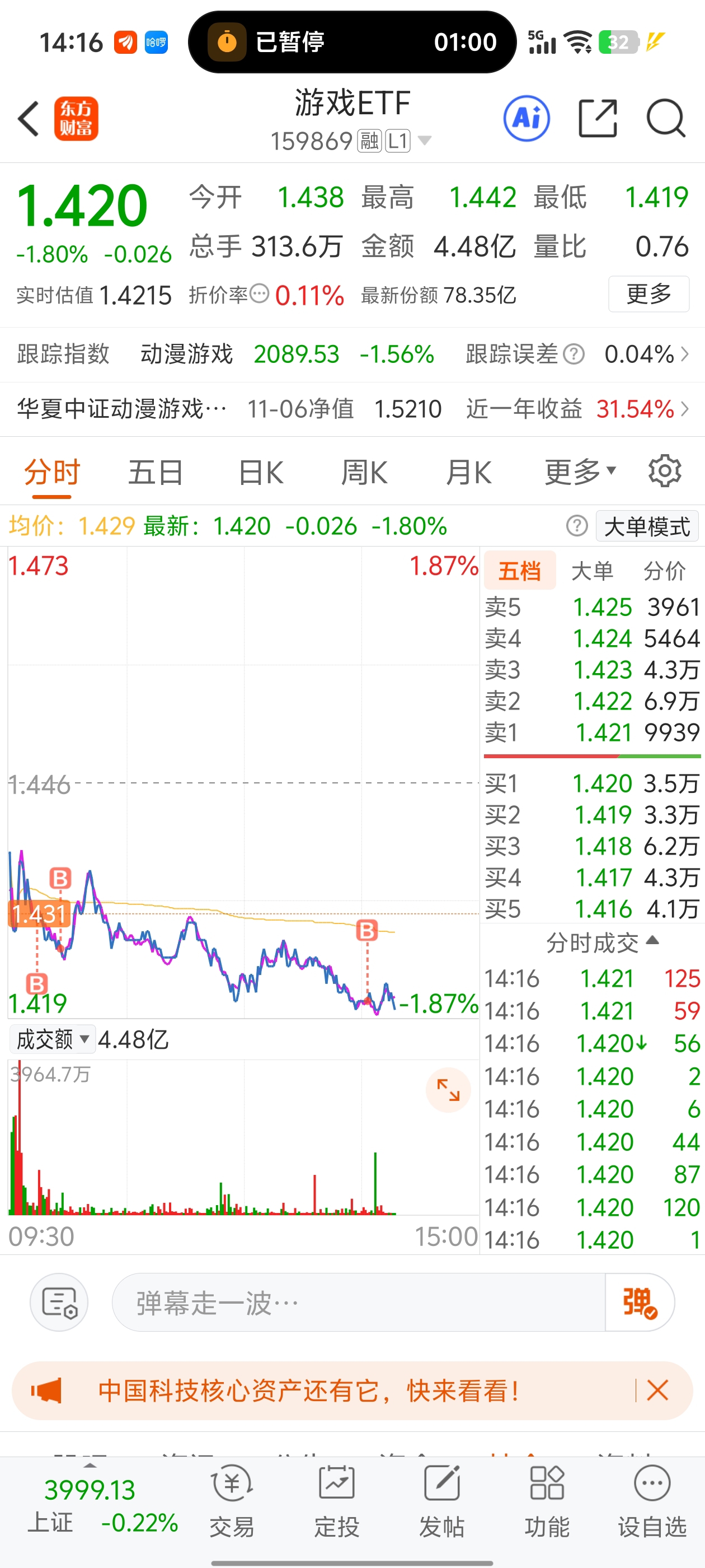 $游戏ETF(SZ159869)$ 越跌越加,加到月底,不信你还不反弹了