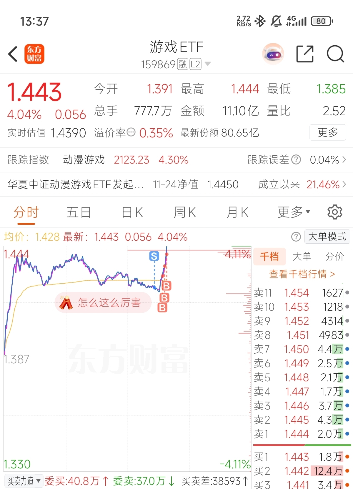 $游戏ETF(SZ159869)$ 刚准备减仓,卖了就涨,一路追