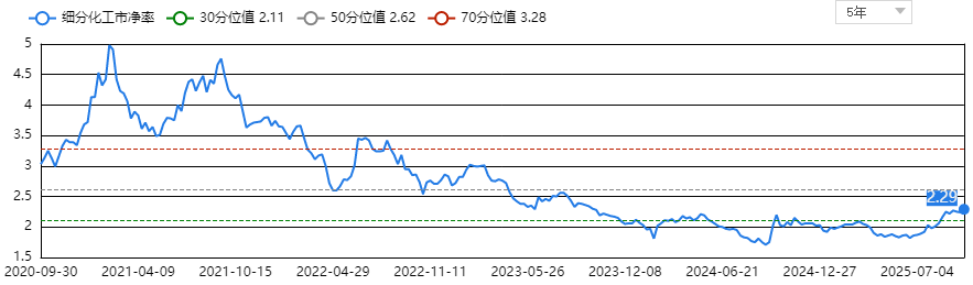 当前细分化工指数市净率(PB)仅2.29倍,处于近5年41%的分位点。这一数字背后,是市场对化工行业“强周期”标签的过度定价。横向对比历史,2016年供给侧改革初期,化工指数PB从1.8倍修复至4.2倍,涨幅达133%;而今,距离历史最高值4.9倍仍有113%的上涨空间。更关键的是,此轮估值修复的驱动因素已从单纯的“供给收缩”升级为“需求爆发+供给优化”的双轮驱动,弹性空间或远超历史。
