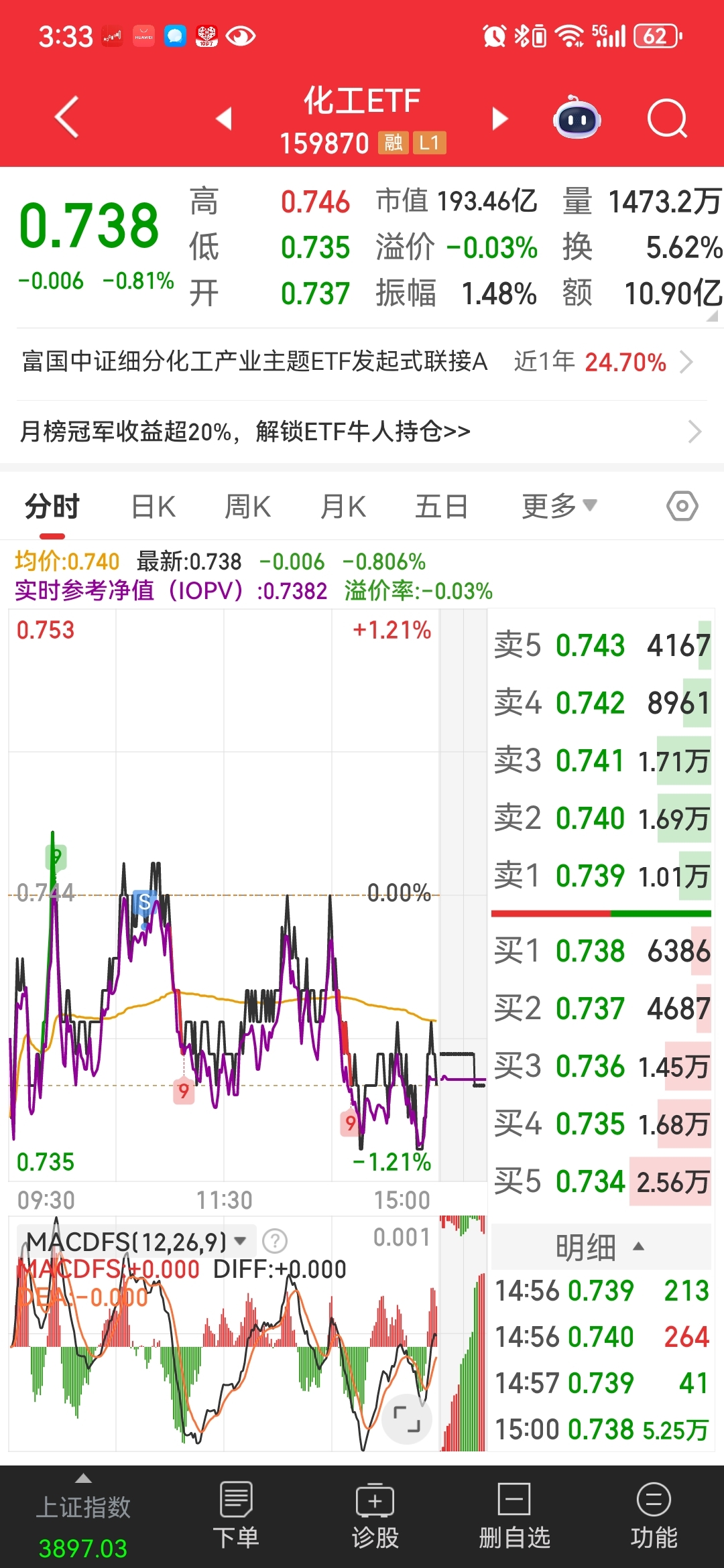 $化工ETF(SZ159870)$ 今逢反抽全部卖完,空仓等跌透充分机会再干