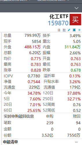 化工ETF行业分布图: