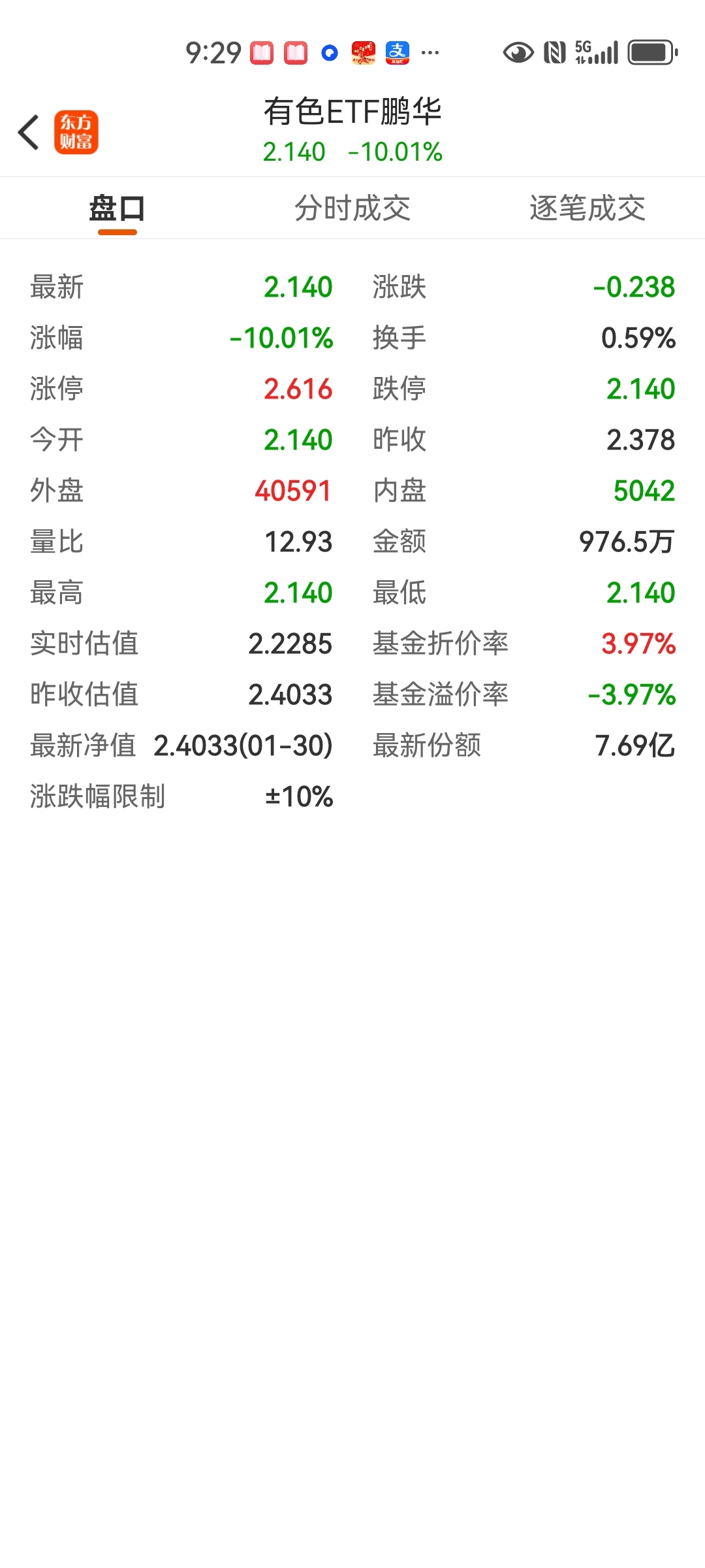$有色ETF鹏华(SZ159880)$ 吧?都在割肉?溢价率负3.96