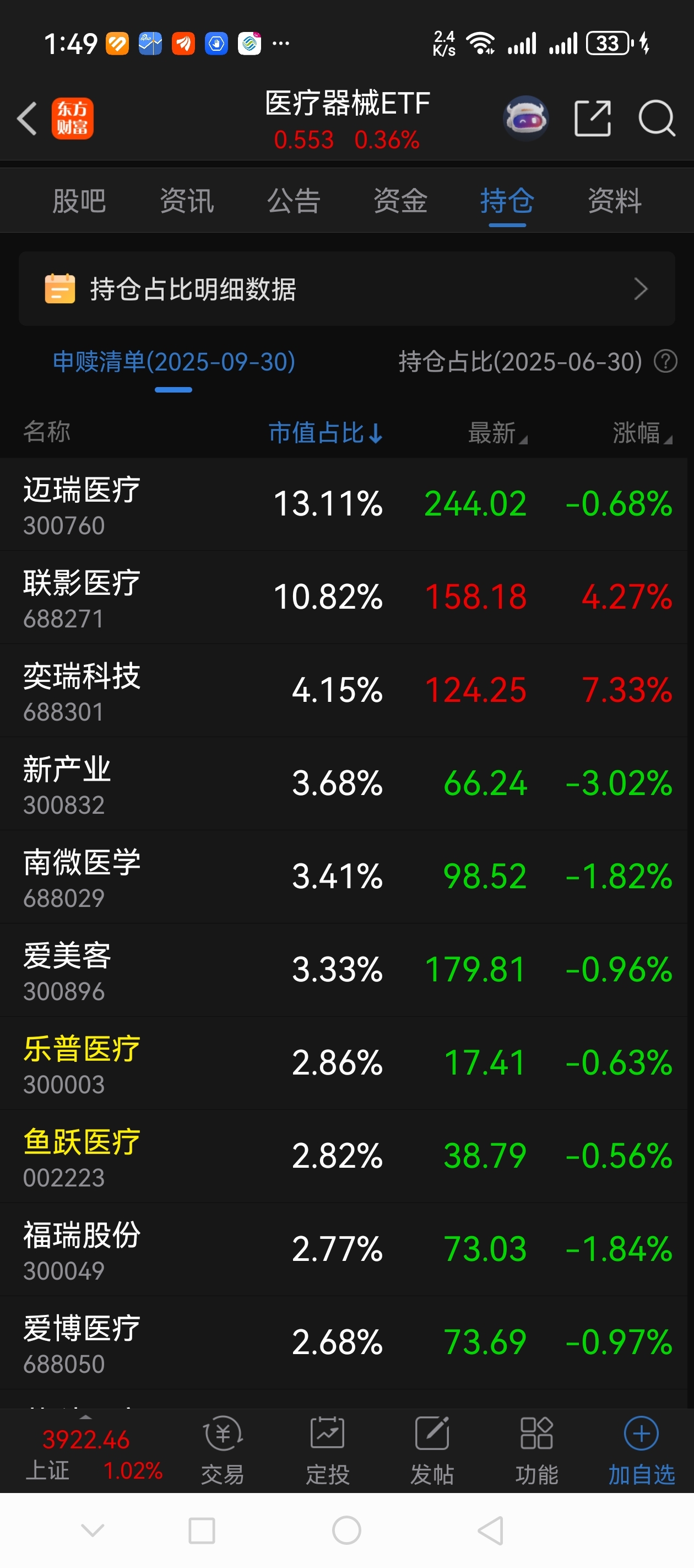 $医疗器械ETF(SZ159883)$ 两支票拉红了0.36。太弱