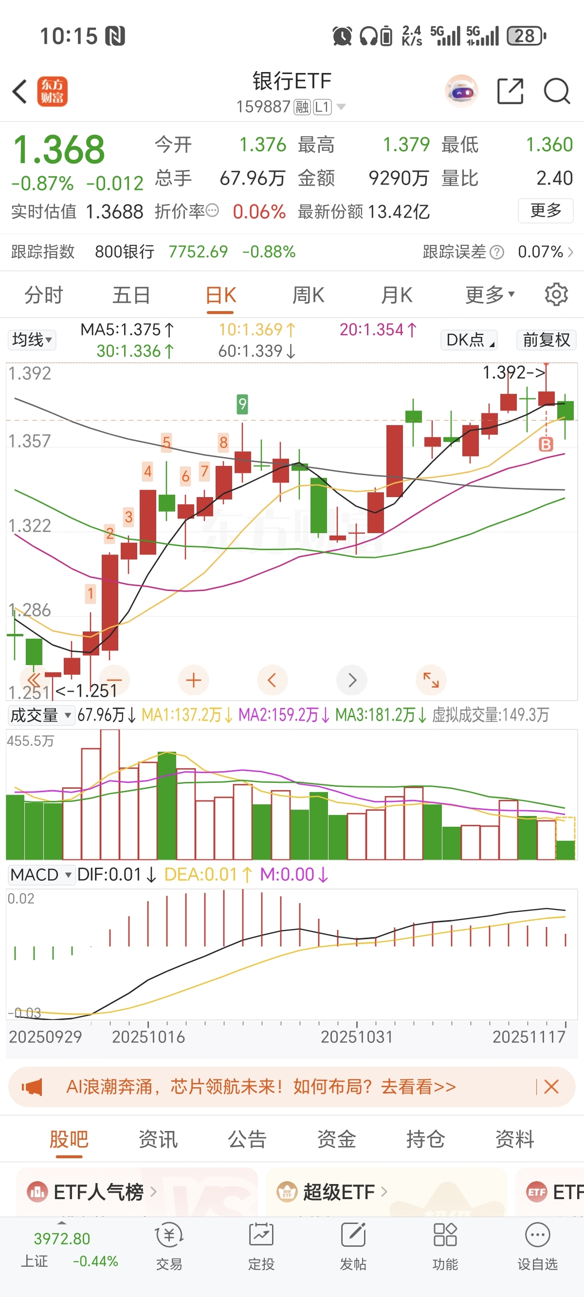 $银行ETF(SZ159887)$ 果真买什么跌什么