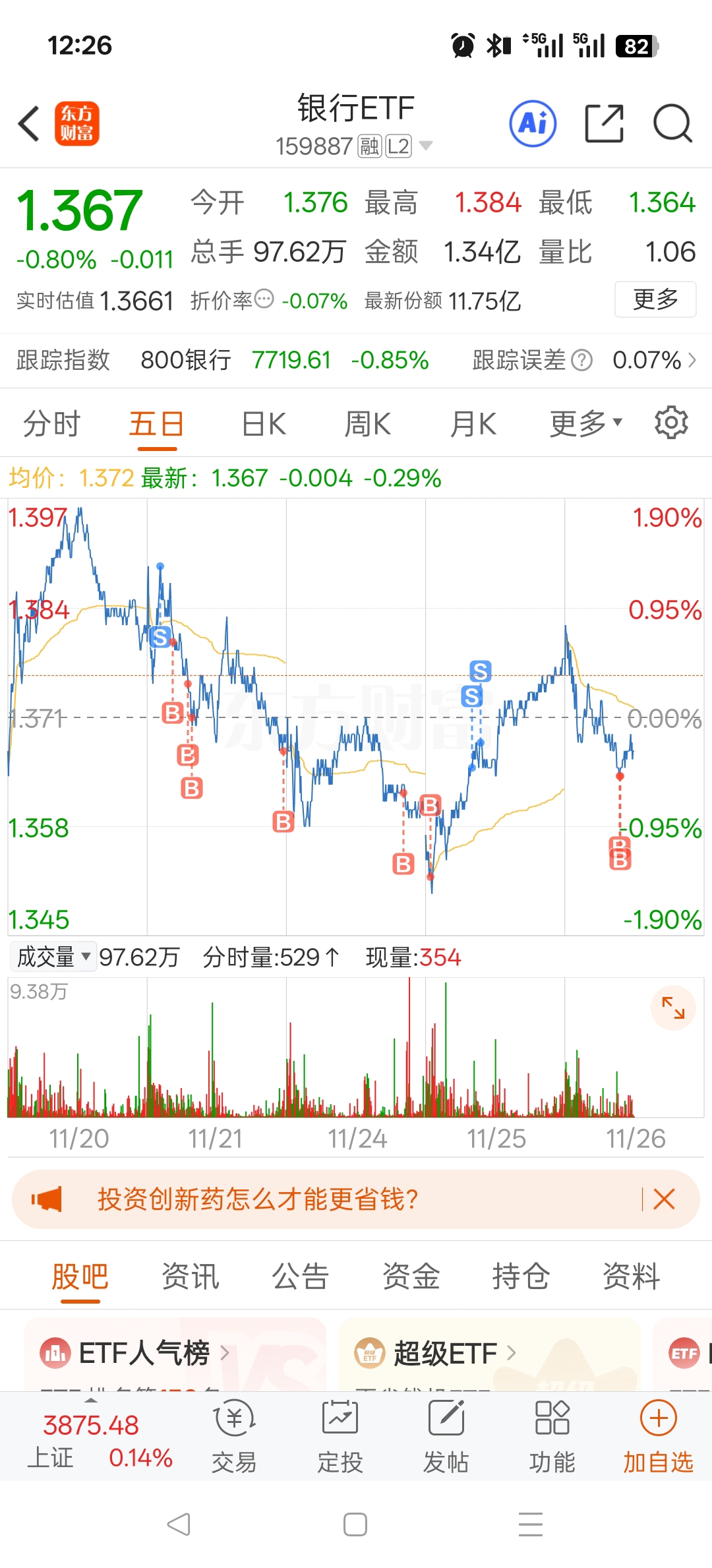 $银行ETF(SZ159887)$ 昨天的失地我又接回来了