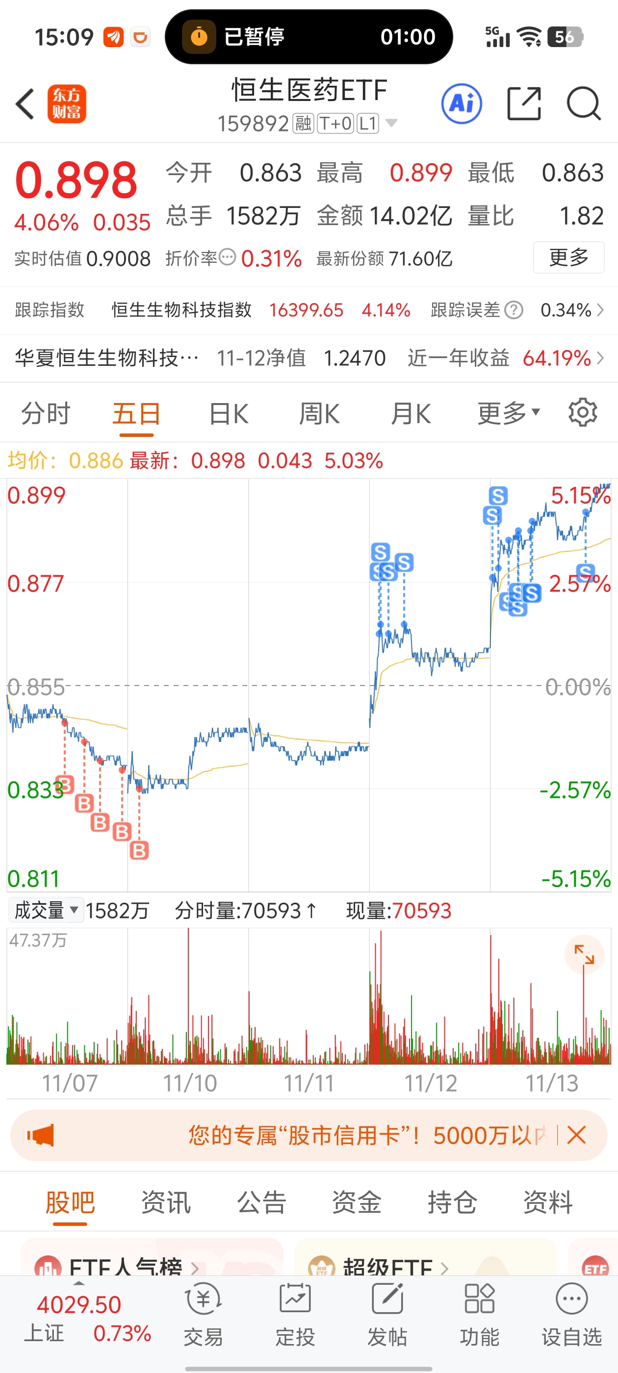 $恒生医药ETF(SZ159892)$ 赚钱就不存在卖飞,7w仓位两天赚了3250块钱,把仓位转移到低位滞胀的其它创新药股票上了