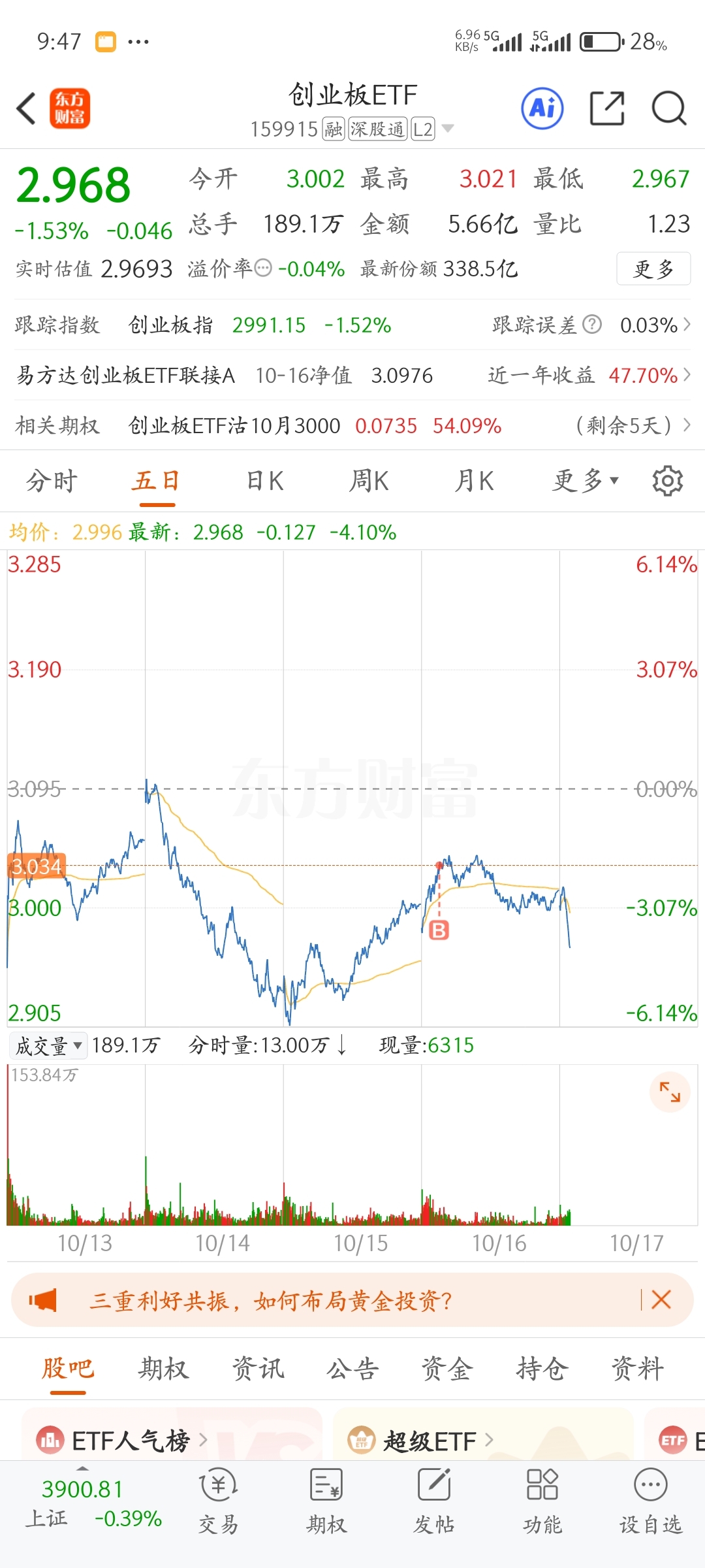 $创业板ETF(SZ159915)$ 怎么我一买就跌