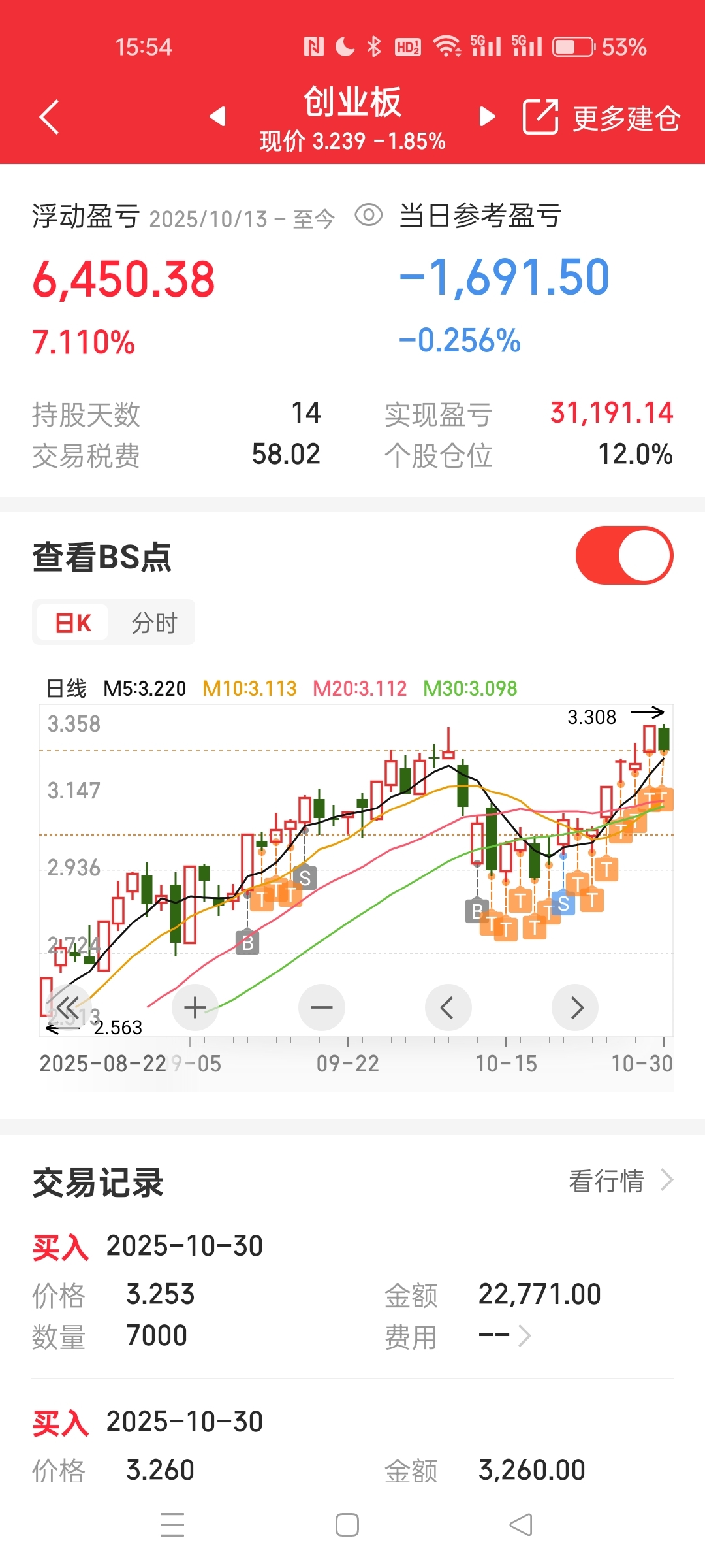 $创业板ETF(SZ159915)$ 五线不破就拿着,跌破就清空,