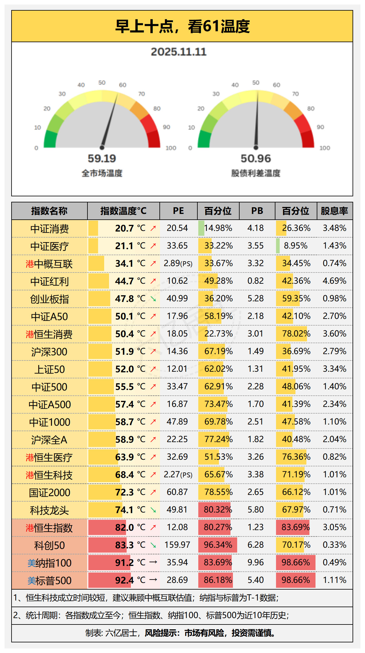 食品饮料:成立于2012年2月,PE = 21.29,全历史24.02%;PB = 4.58,全历史27.5%,综合温度:25.76,处于正常偏低。