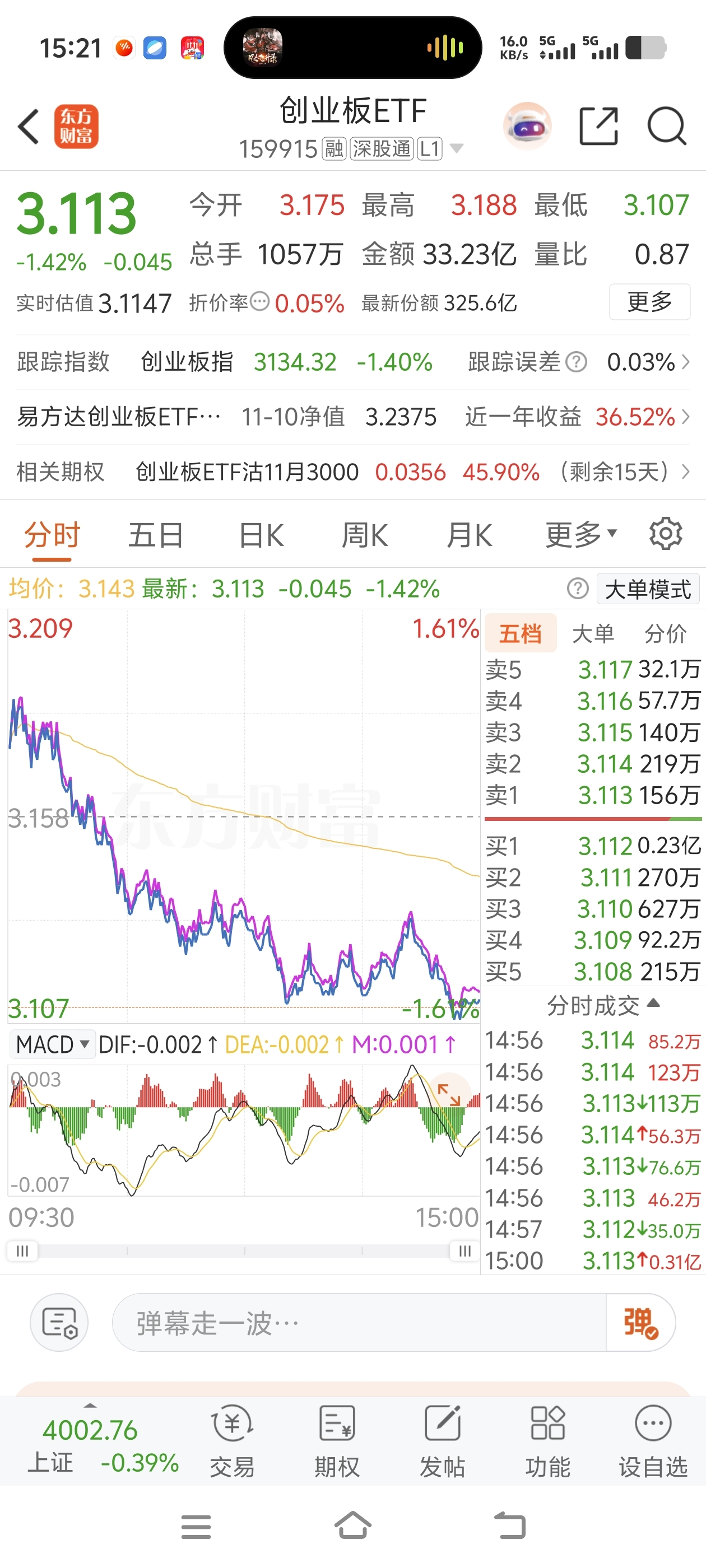 $创业板ETF(SZ159915)$ 没有我买不崩的小心
