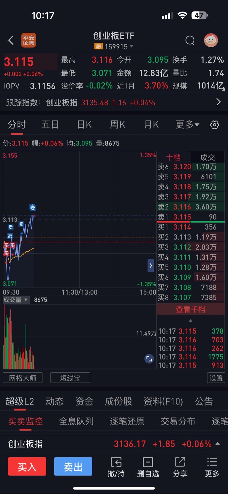 $创业板ETF(SZ159915)$ 感谢你主力,拿走大几百够了,就当奖励昨天自己基本上买到最低点,别欺负别人没钱加仓,你破我均线我再买,你们拉指数,我陪你们。