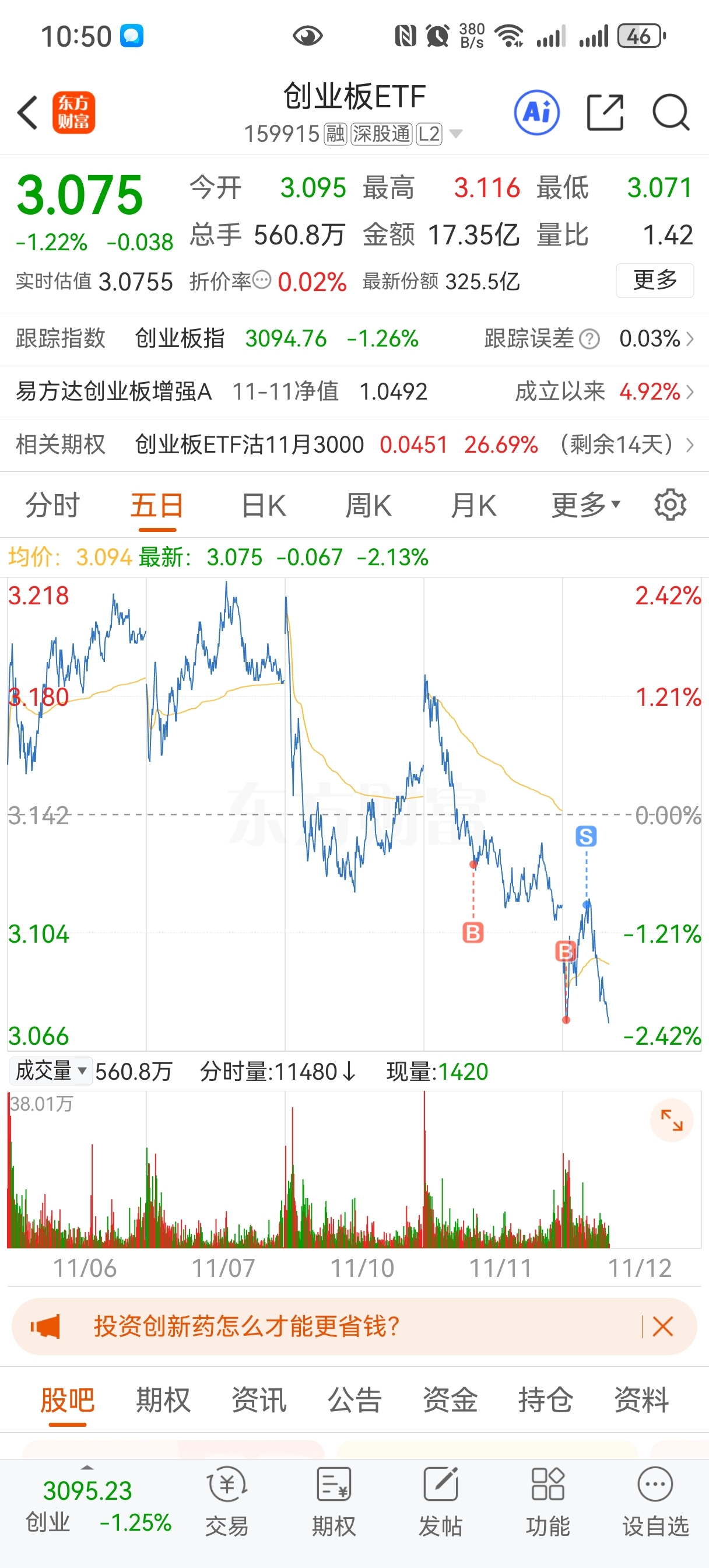$创业板ETF(SZ159915)$ 尾盘看要不要买回来