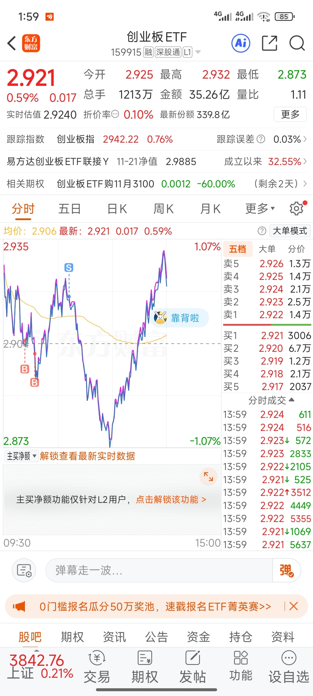 $创业板ETF(SZ159915)$ 讨厌的T+1,不能止盈,难道非要明天割肉吗