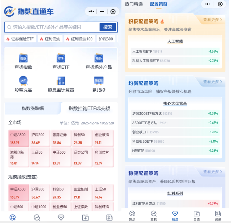 下图截自易方达旗下的指数直通车小程序: