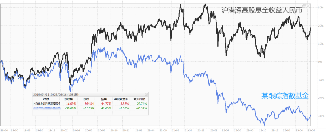 但我的建议是,简单粗暴地去看近几年的走势图,如果两者走势看起来比较像,那就说明跟踪准。