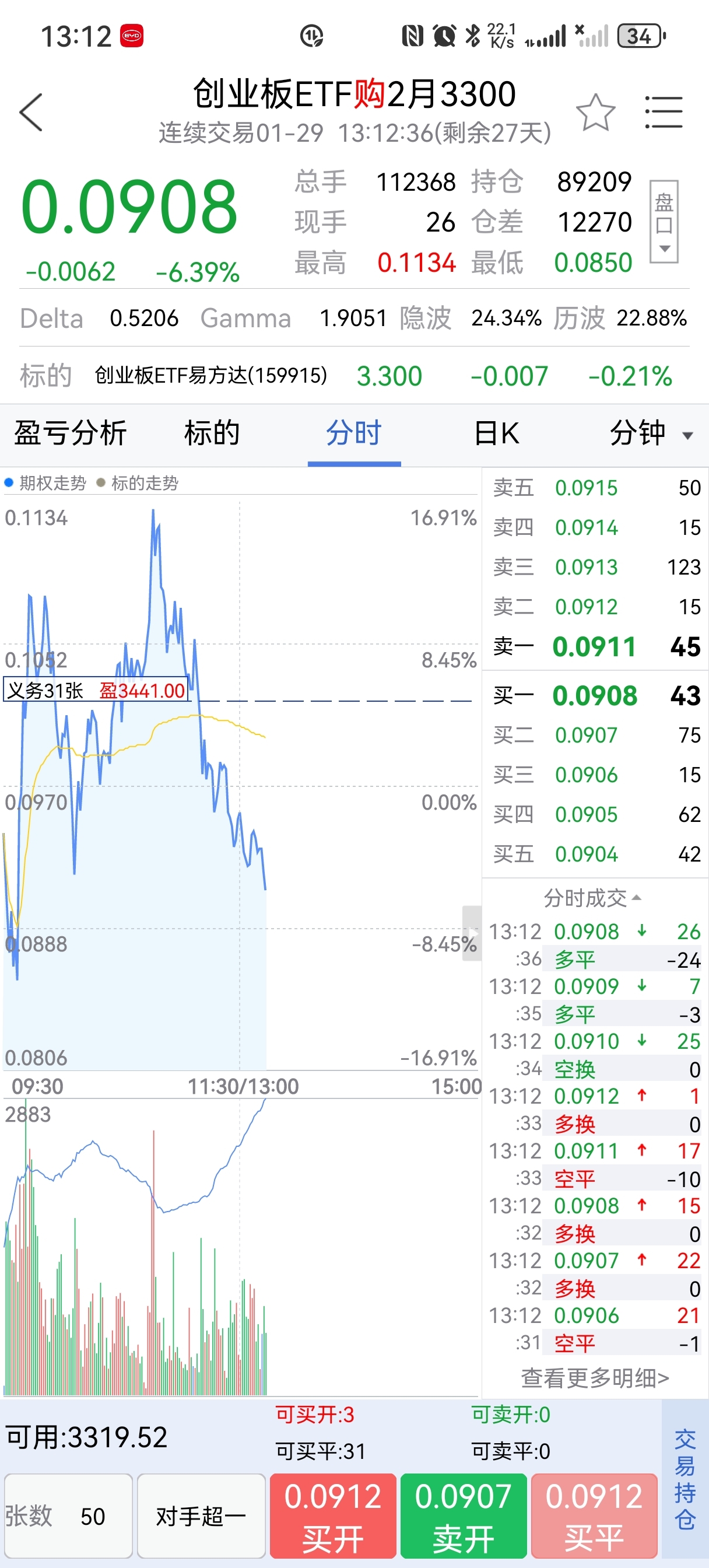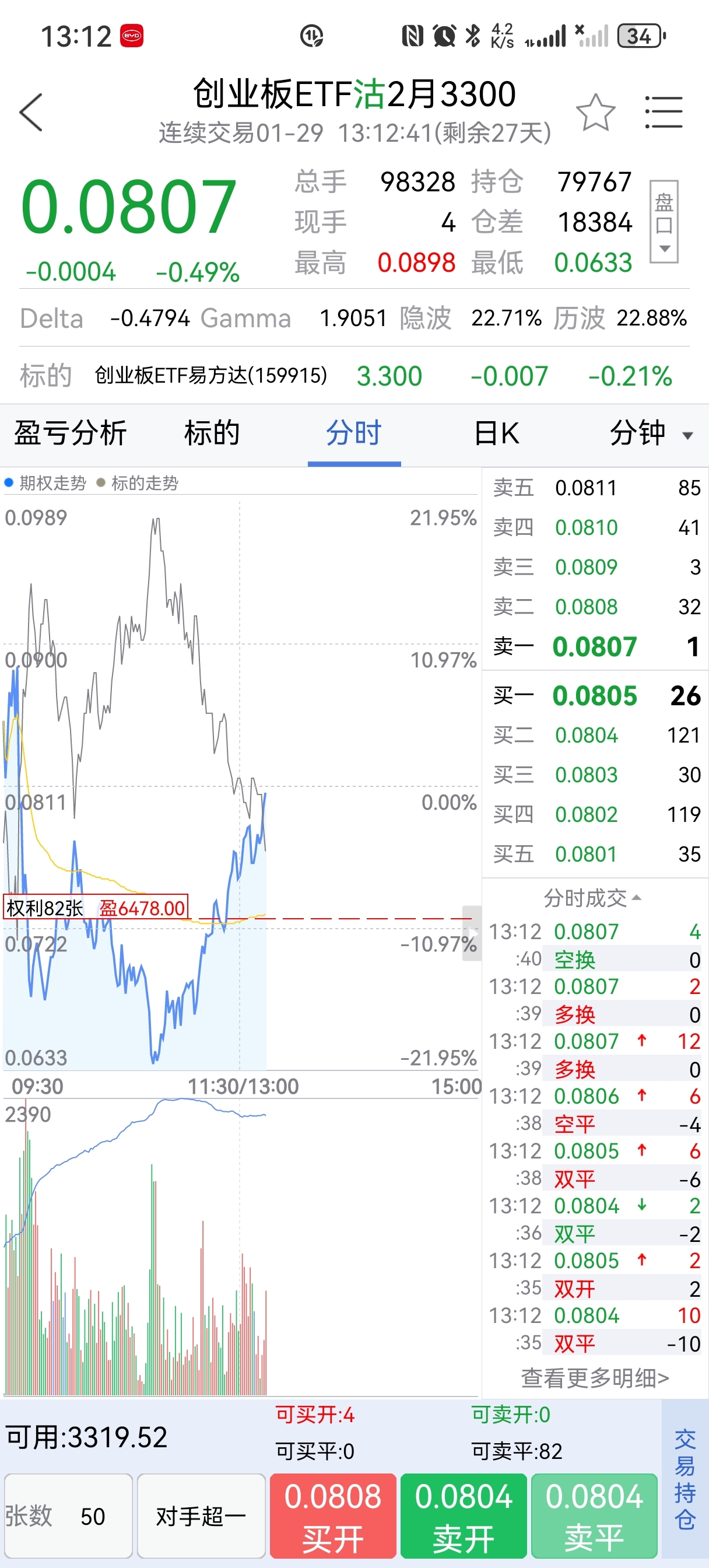 上午先多后空,目前回血2万。