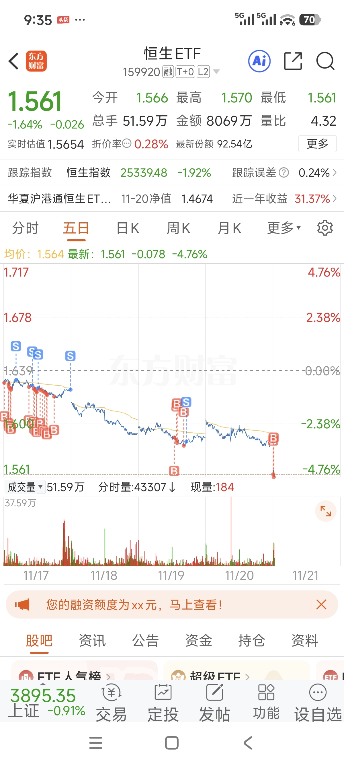 $恒生ETF(SZ159920)$ 开始建仓了!麻痹了