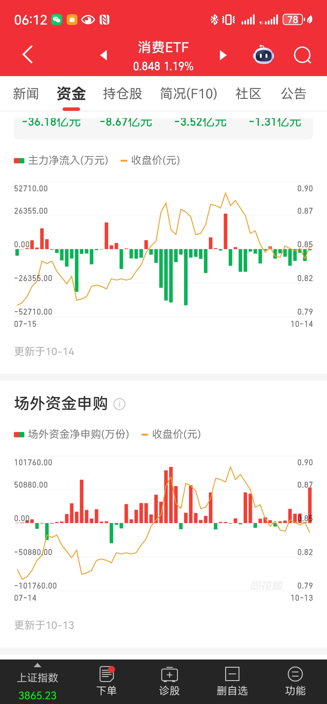 $消费ETF(SZ159928)$ 谁能解释倒挂问题吗,场外资金涌入,场内资金流出,股价大跌