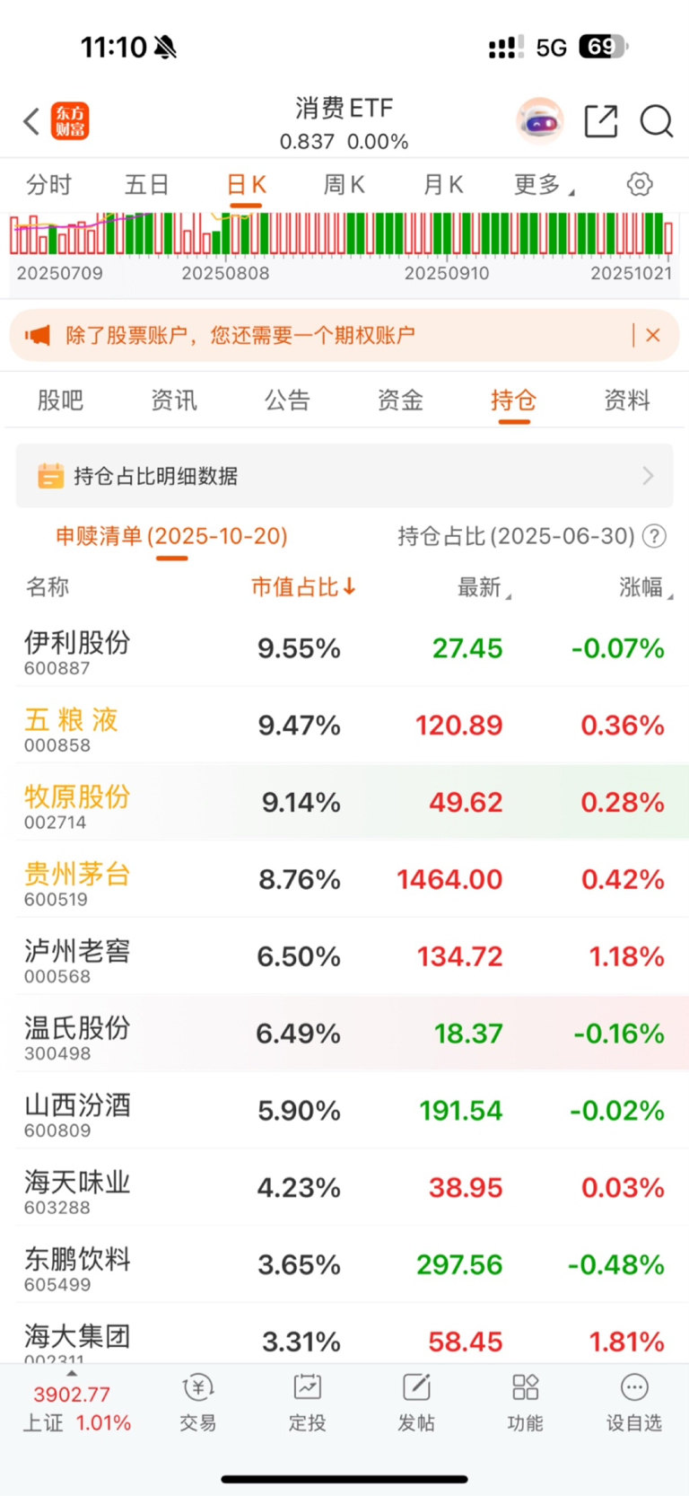 $消费ETF(SZ159928)$ 持仓前几名都是红的,为啥不涨