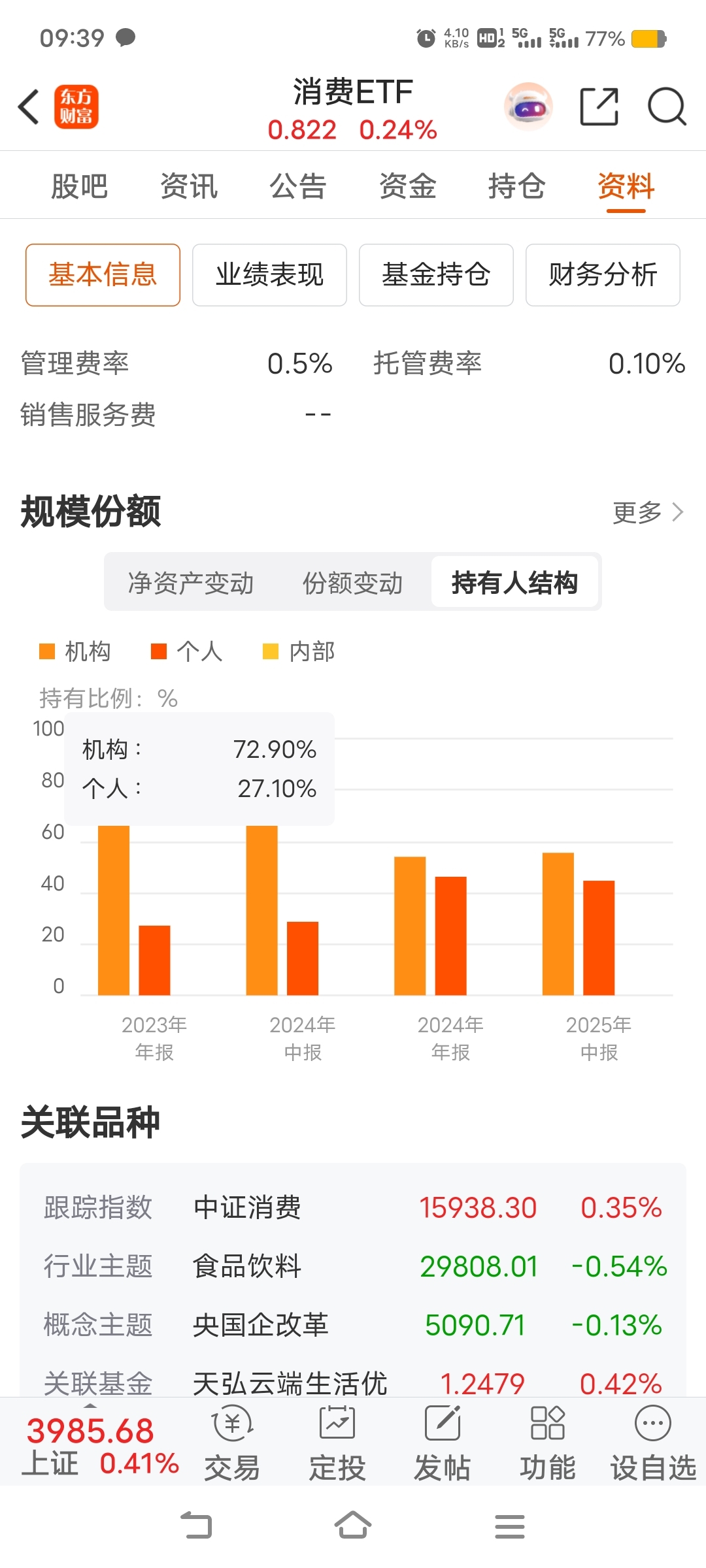 $消费ETF(SZ159928)$ 你们不会看吗?筹码全部卖给散户了,全是散户在抄底,涨个XX,3年内,不会涨得了