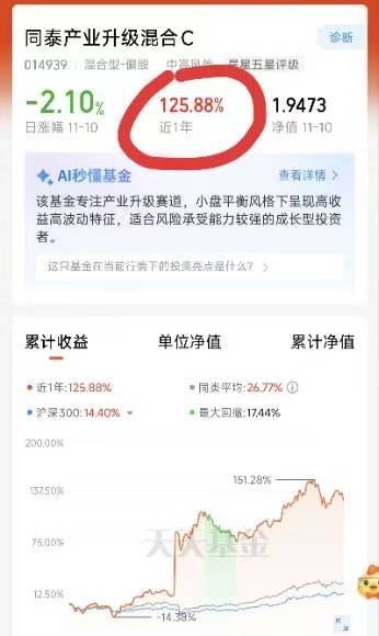 冠军来了!同泰产业升级近一年同类第一,独家押注港股和北交所机器人板块,规模适中运作灵活,收益突出!$同泰产业升级混合C$