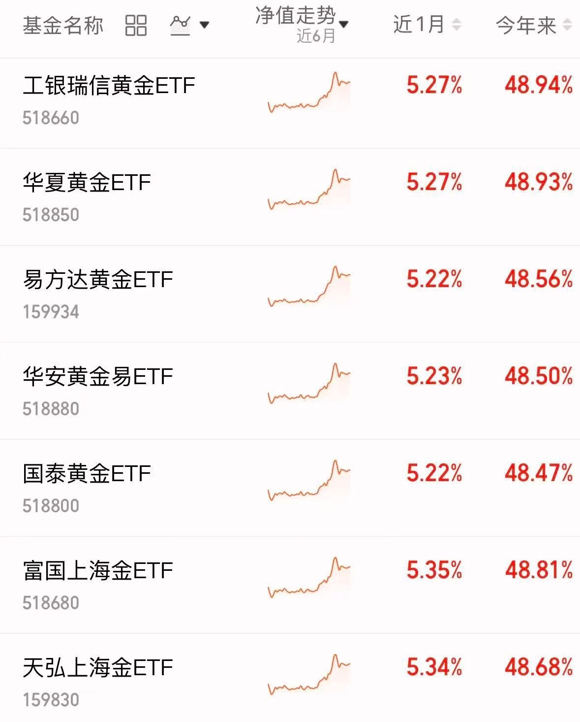 黄金目前开始高位震荡,建议控制仓位并以资产配置的理念长期持有。$黄金ETF基金(SH518660)$  是持有费率最低的黄金ETF,合计持有期间费率只有0.2%,是其他黄金ETF的三分之一,今年以来业绩是所有黄金ETF的第一名(如图,截止11月7号),每年比其他高费率黄金ETF多赚0.4%左右。