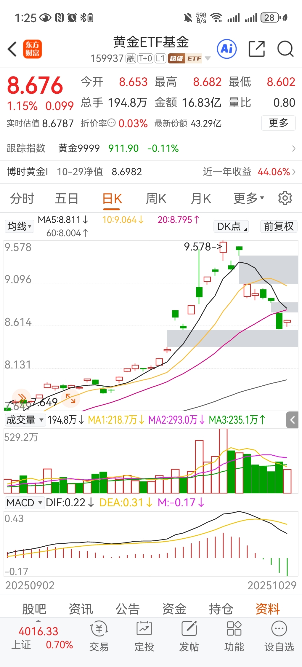 $黄金ETF基金(SZ159937)$ 开始建仓