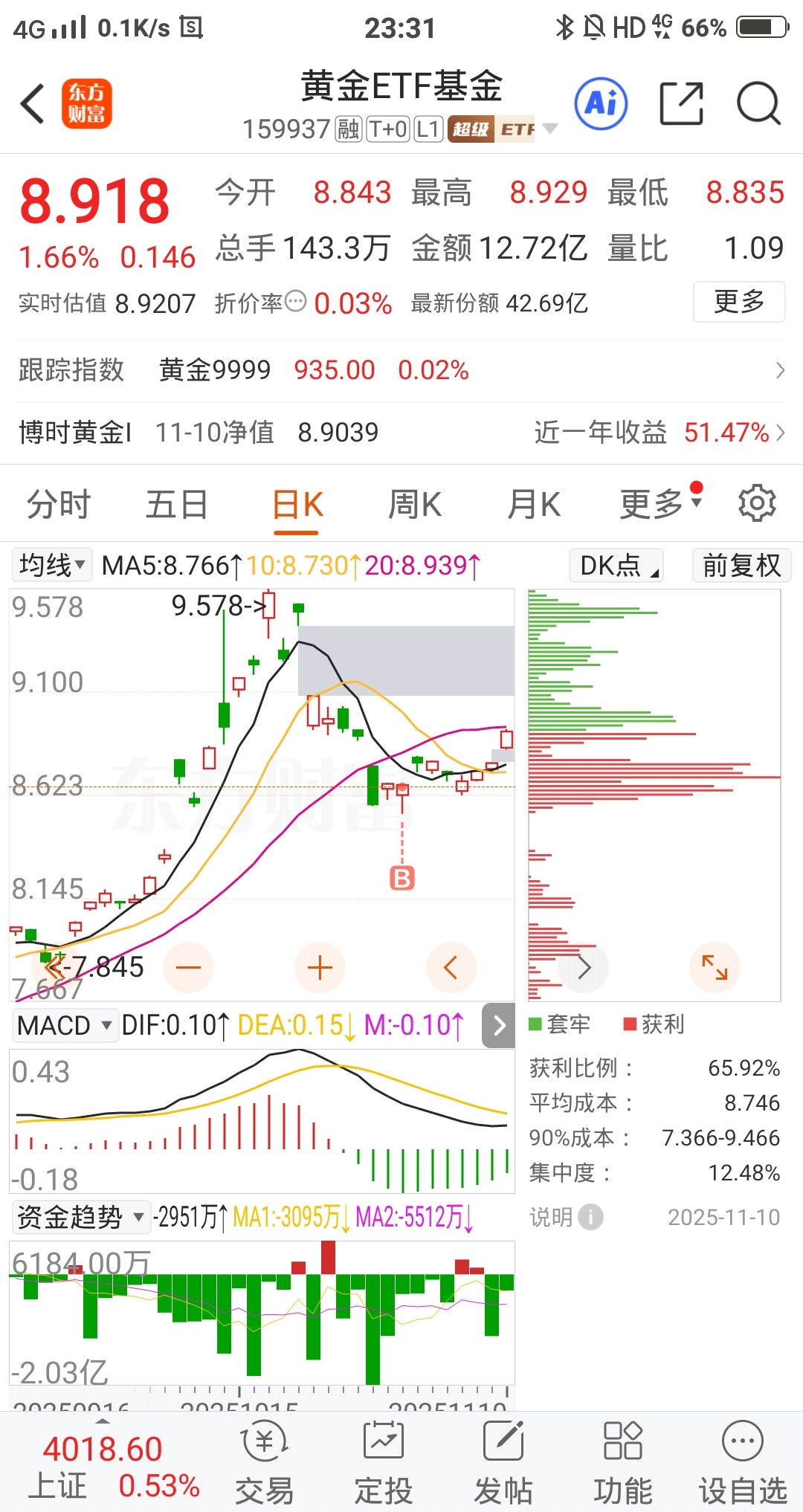 $黄金ETF基金(SZ159937)$ 算成功抄底了吗