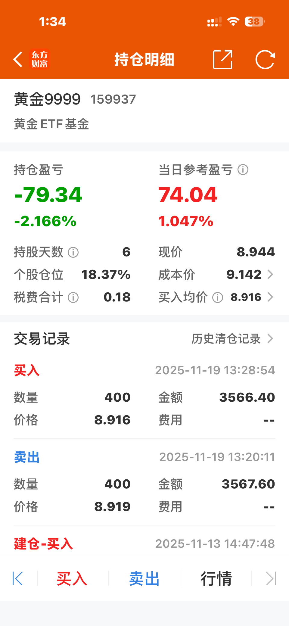 $黄金ETF基金(SZ159937)$ 做个t都差点被甩飞