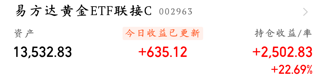 $华安黄金ETF联接C(OTCFUND|000217)$ $国泰黄金ETF联接C(OTCFUND|004253)$ $广发上海金ETF联接C(OTCFUND|008987)$ $天弘上海金ETF发起联接C(OTCFUND|014662)$ $华夏黄金ETF联接C(OTCFUND|008702)$ $华夏有色金属ETF联接C(OTCFUND|016708)$ $嘉实上海金ETF发起联接C(OTCFUND|016582)$ $国投瑞银白银期货(LOF)C(OTCFUND|019005)$ $前海开源金银珠宝混合C(OTCFUND|002207)$ $永赢中证沪深港黄金产业股票ETF发起联接C(OTCFUND|020412)$